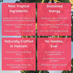 Lecka Energy Bars are a burst of the tropics in every bite?featuring real mango, banana, coconut, pineapple, and more, sourced directly from small farms across Vietnam. We craft our bars with dried fruit picked at peak ripeness and minimally processed to preserve natural sweetness and freshness.