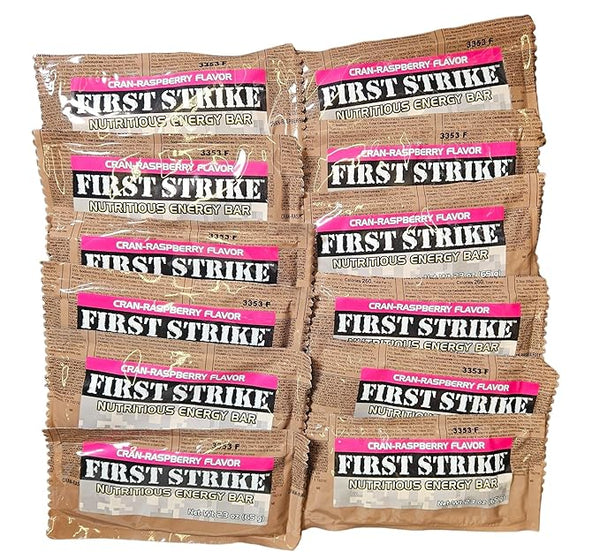 First Strike Energy Bar Full Size [2.3oz] - Authentic Long-Life USGI MRE Ration Nutrition Bars. Many Flavors and Packs to choose from Recent Production dates (12 CranRaspberry)