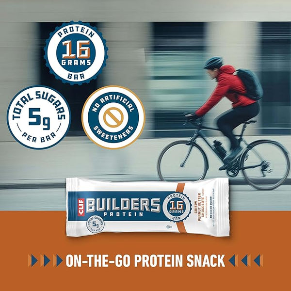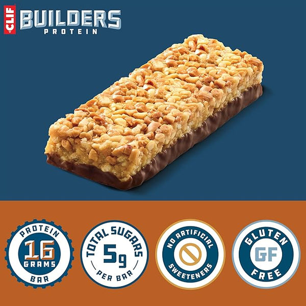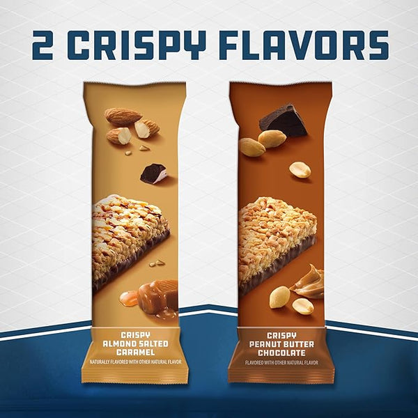 CLIF BUILDERS Crispy Almond Salted Caramel and Crispy Peanut Butter Chocolate Flavored Protein Bars, Reduced Sugar, Gluten Free