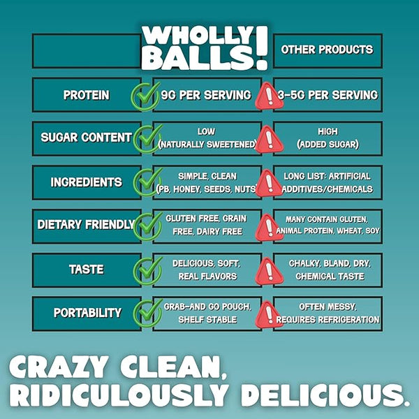 Explore Wholly Balls! for a premium selection of protein bites and healthy snacks crafted with our premium, plant based, tri-blend protein, organic peanut butter, wildflower honey, and functional fats. Perfect for on-the-go nourishment or a post-workout treat.