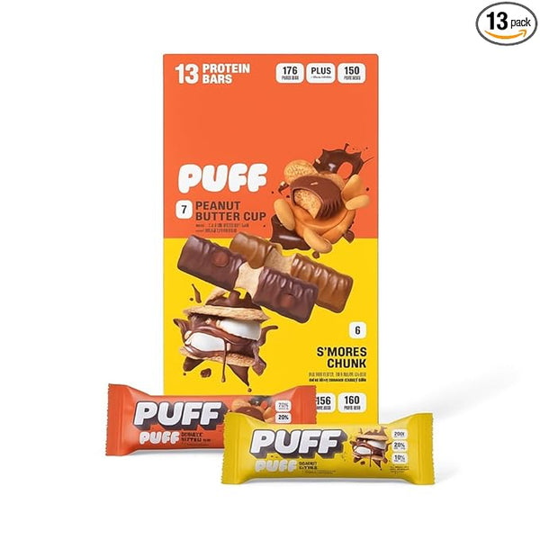 Puff Protein Bars7 Peanut Butter Cup 6 S'more Chunk Flavor 17g Protein Gluten Free 19.2 oz 13 Variety Pack.