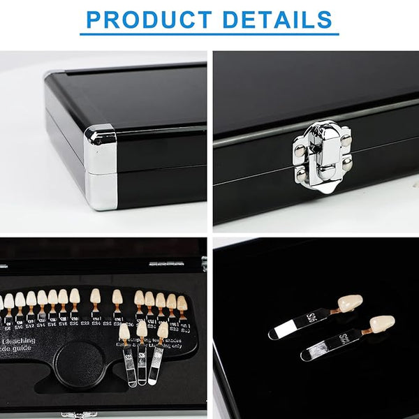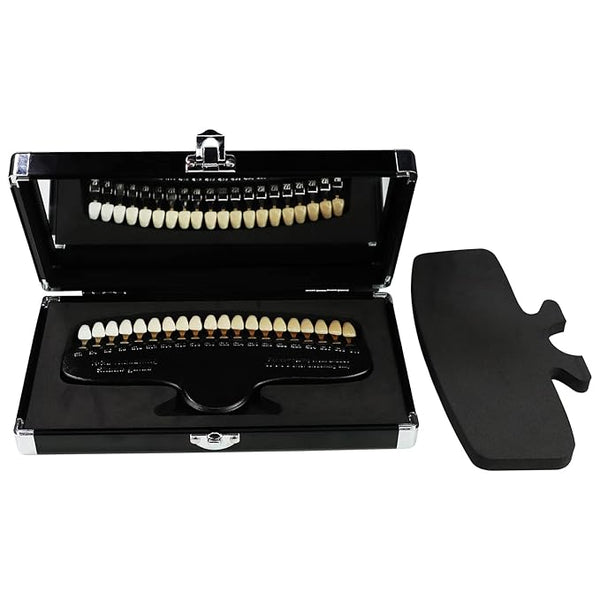 20 Colors shades with large, laser engraved numbers are easy to read and long lasting. The dental shadow chart has a unique design and smooth outline. Stylish aluminum mirror box with mirror, easy to carry and easy to maintain.