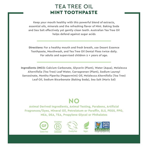Desert Essence Tea Tree Oil Toothpaste - Mint - 18.75 Oz (6.25 Oz * Pack of 3) - Refreshing Taste - Deep Cleans Teeth & Gums - Helps Fight Plaque - Sea Salt - Pure Essential Oil - Baking Soda