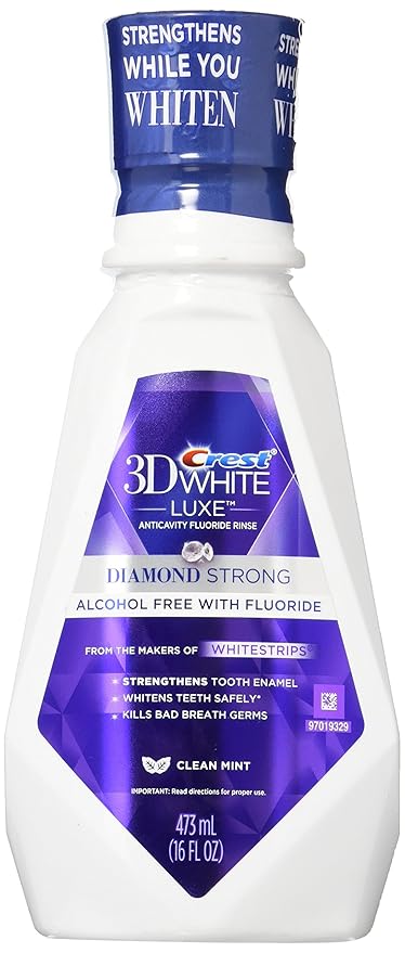 Crest 3D White Luxe Diamond Strong Anticavity Fluoride Mouth Rinse Clean Mint 16 Oz, (Pack of 2)