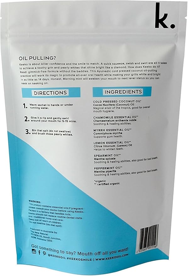 Keeko - Natural/Organic Oil Pulling Sachets (Morning Mint) (14 Packets (2 Week Course))