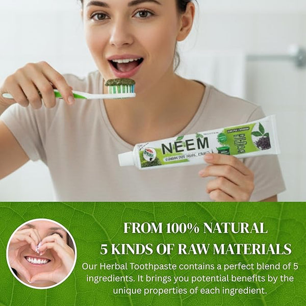 Pack of 6 - Organic Neem 10 in 1 Fluoride Free Toothpaste - Neem, Clove, Black Seed, Cardamon, Aloe Vera, Tea Tree Oil, Miswak, Clove - Herbal Blend - 7.05 oz