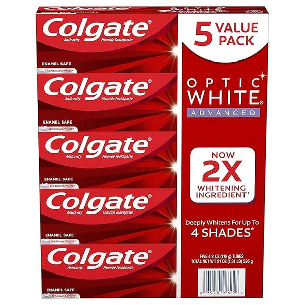 Colgate Optic White Advanced Teeth Whitening Toothpaste, Sparkling White (4.2 Oz., 5 Pk.), 21 Oz