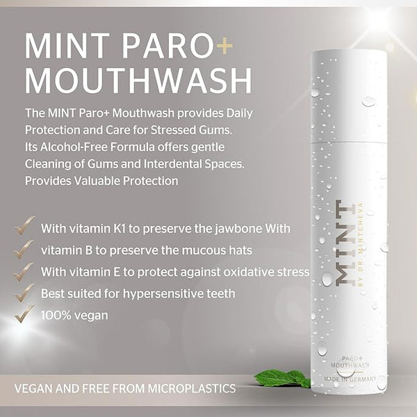 Mint PARO+ mouthwash - Innovative Formula - Care for Teeth and Gums - Against periodontal Disease, Gum Irritation, Bleeding Gums - by Dr. Mintcheva