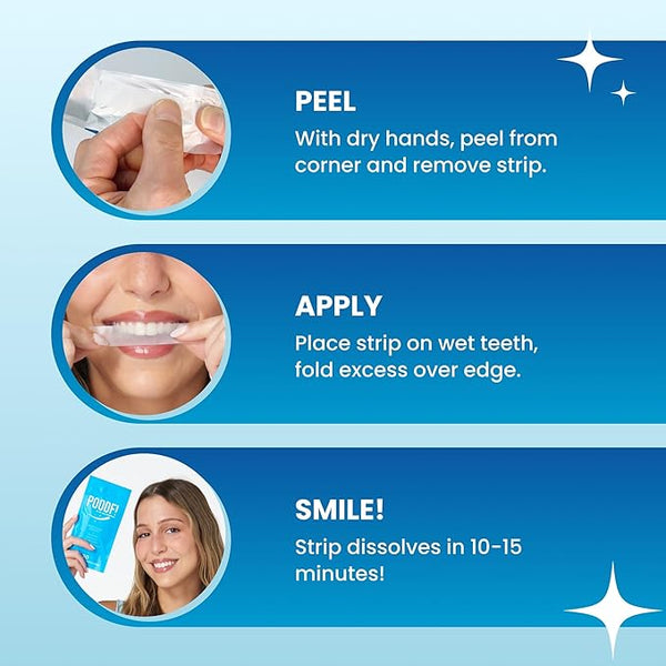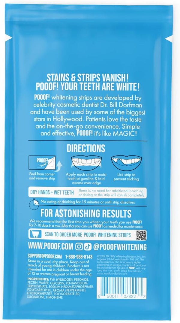 Product descriptionStains Disappear, Strips Disappear, and POOOF! You have a Brighter Smile!World-Famous Celebrity Cosmetic Dentist, Dr. Bill Dorfman, Introduces His Latest Innovative Dissolving Teeth Whitening Strips!Conscientiously CraftedDr. Bill Dorfman is...
