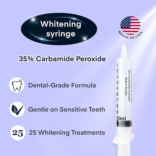 This kit is the perfect refill or complement to your existing Teeth Whitening Kit. Our whitening gel is made in an FDA-registered U.S. facility, ensuring safety and quality. Whether you want to maintain your current results or start a new whitening cycle, this syringe-and-pen set is an easy and effective solution.