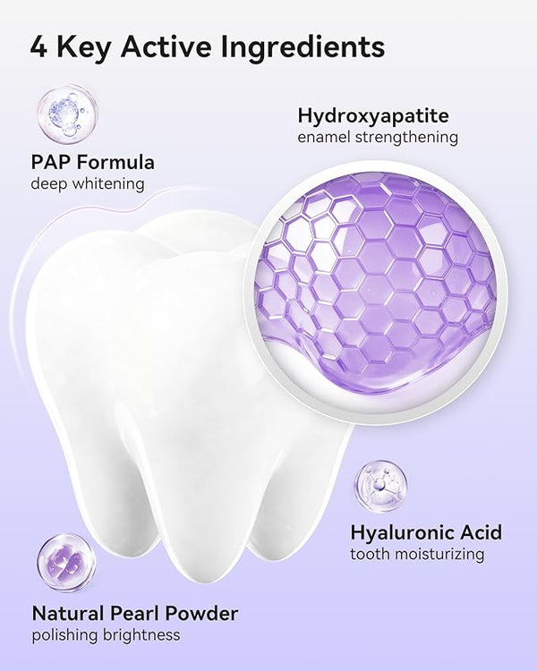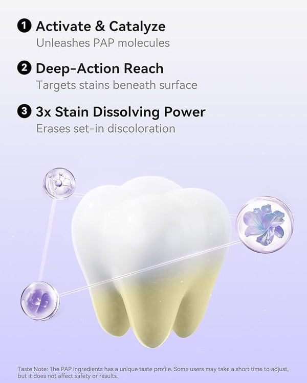 Powered by PAP, it breaks down stain molecules without releasing harsh free radicals. This means gentle whitening that won¡¯t harm enamel, while hydroxyapatite helps protect teeth and gums for healthier daily care.