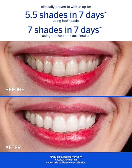 Supersmile Fluoride-Free Whitening System Gift Set with Travel Bag ? 2 Calprox¢ç Toothpastes, Accelerators & New Generation Toothbrushes ? No Sensitivity, Whitens Up to 6 Shades & Strengthens E
