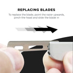 Simply pinch the razor head and the blade will drop out. Changing the blade is fast and easy. Use caution when changing blades. Please use feather artist club blades for replacing blades.