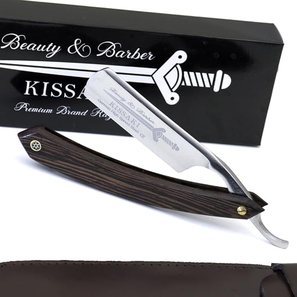 Shave Ready Straight Razor - Straight Edge Razor with Wenge Wood Scale & Sheath ? Sharp, High Speed Steel Straight Edge Razors for men, Classic Barber Accesories