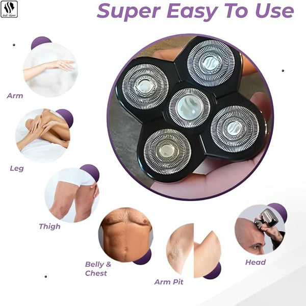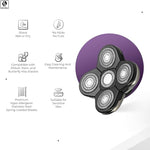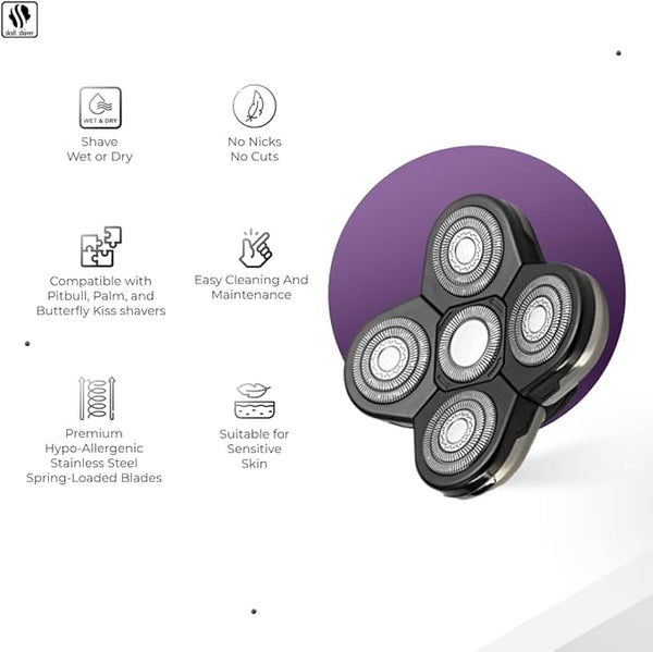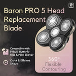 Baron Blades have 5 independently flexing rotary blades which allow efficient close shaving following all the contours of your head, face, and curves of your body.