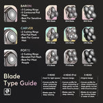 Baron blades have 3 cutting rings which allow better access to difficult areas and ensure a close cut of even hard to reach areas leaving no hair stranding.