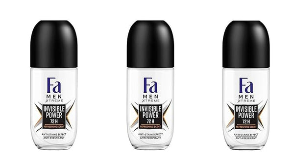 (Pack of 3) Fa Men Xtreme Invisible Power Anti-perspirant Deodorant Roll On for Men 3 x 50ml / 3 x 1.7 Fl Oz