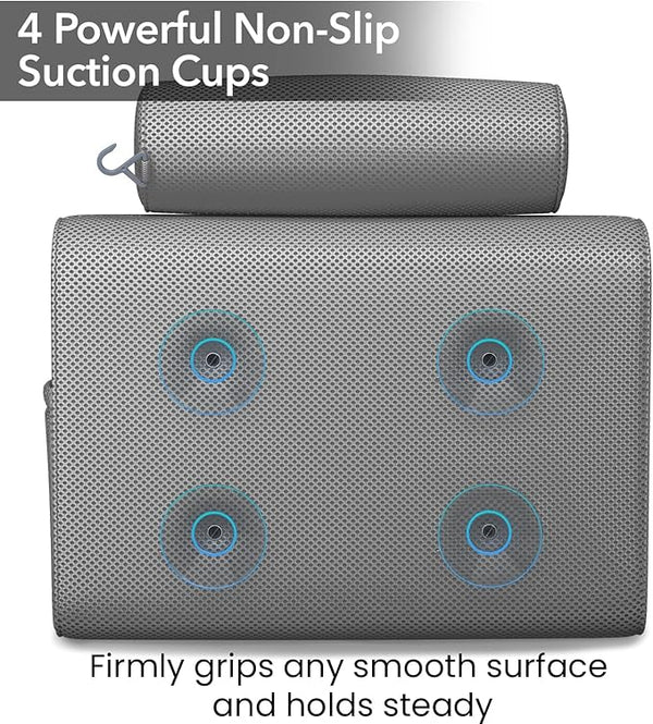 Our bath pillow offers the ultimate relaxation experience with its plush, contoured design that supports your head, neck, shoulders, and back. With strong suction cups, a breathable mesh cover, and fast drying material, it works with all tub types for the ideal solution for your self care