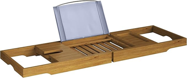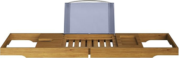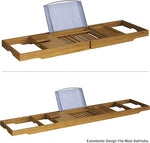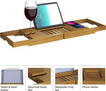 Acacia Bathtub Tray - Natural Wood Tray with Extended Sides, Wine Glass Holder, Book, Phone, or Tablet Rest - for Bath Accessories by Home-Complete