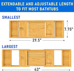 Our Bamboo bath table tray designed for maximum convenience, this tray expands from 30 inches to 43 inches, ensuring a perfect fit for any bathtub.