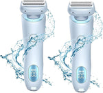 2 in 1 Waterproof Electric Shaver, Wet and Dry, Removable Head, for Leg Arm Bikini Underarm (Blue*2)