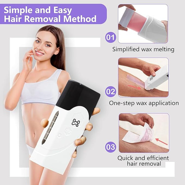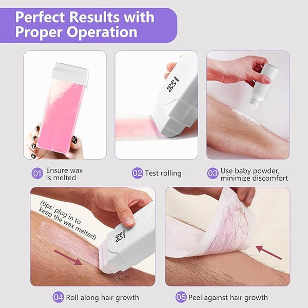 Waxfans Roll on Wax Kit, Hair Removal Waxing Kit, Wax Roller for Larger Areas of the Body, Home Waxing Kit for Women and Men, Sensitive Skin Friendly (Black)
