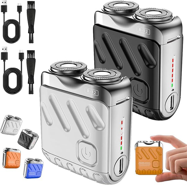 Portable Rotary Dual Ring Electric Shaver, Washable Double Head Mini Electric Shaver with High-Speed Motor, Small USB Rechargeable Waterproof Razor for Men, Easy Cleaning for Home & Travel (Mixed1