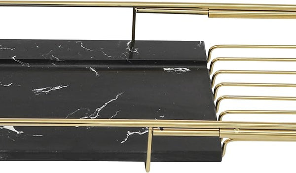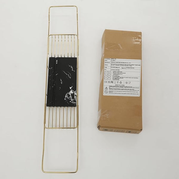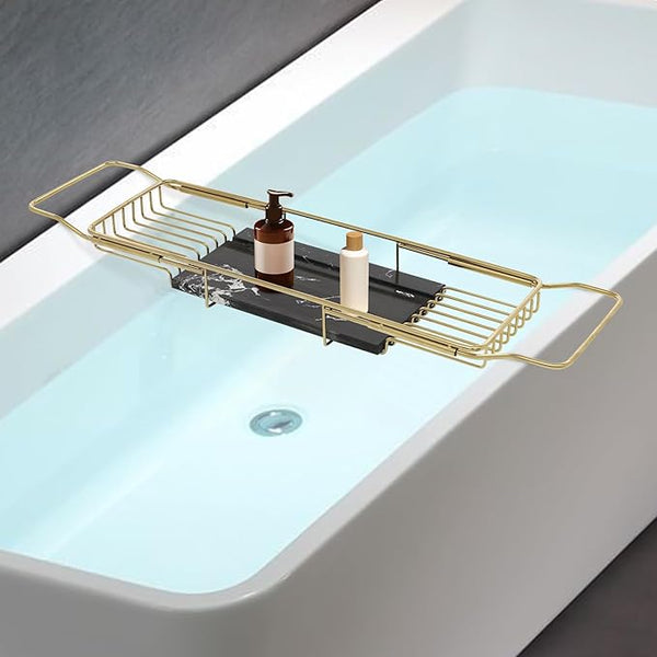 Bathtub Tray Caddy for Luxury Bath, Stainless Steel 26.8-35.4 in Expandable Extra Wide Bath Tub Tray with Natural Marble and Mobile/Tablet Stand, Ideal for Home Spa Lovers (Gold + Black)