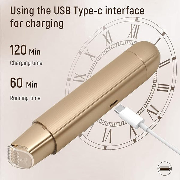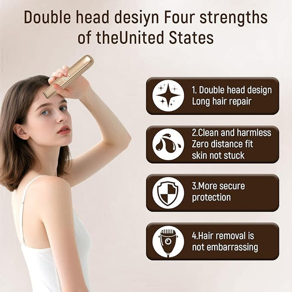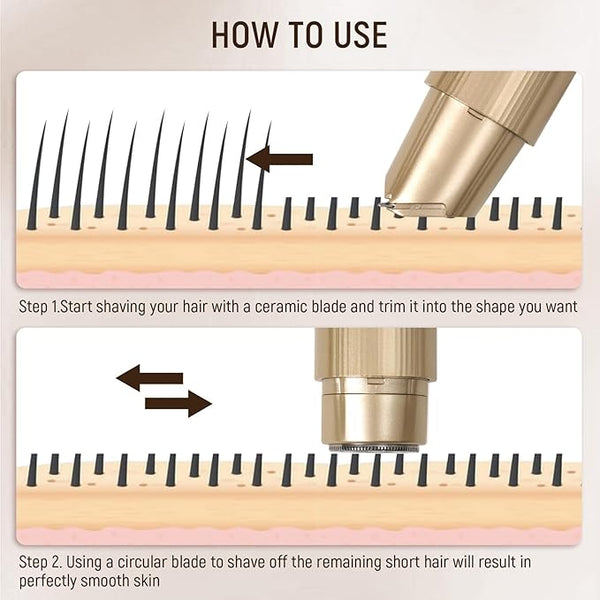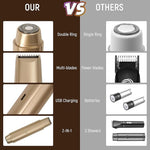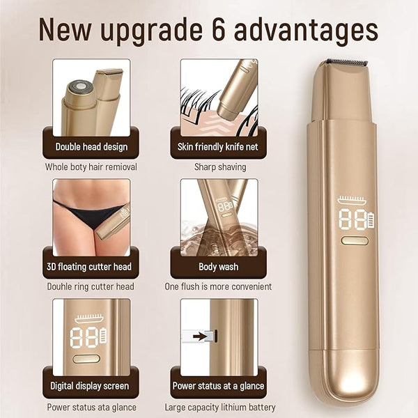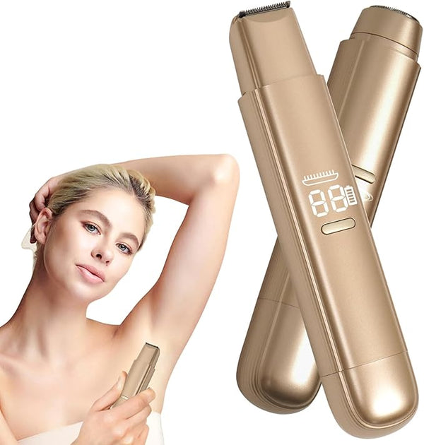 2 in 1 Bikini Trimmer for Women, Dual Head Electric Razor, IPX7 Waterproof Wet/Dry Use Women Electric Shaver, Painless Body Facial Hair Remover for Bikini Legs Arm Underarm,(Golden)