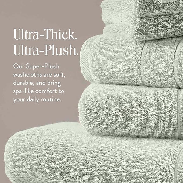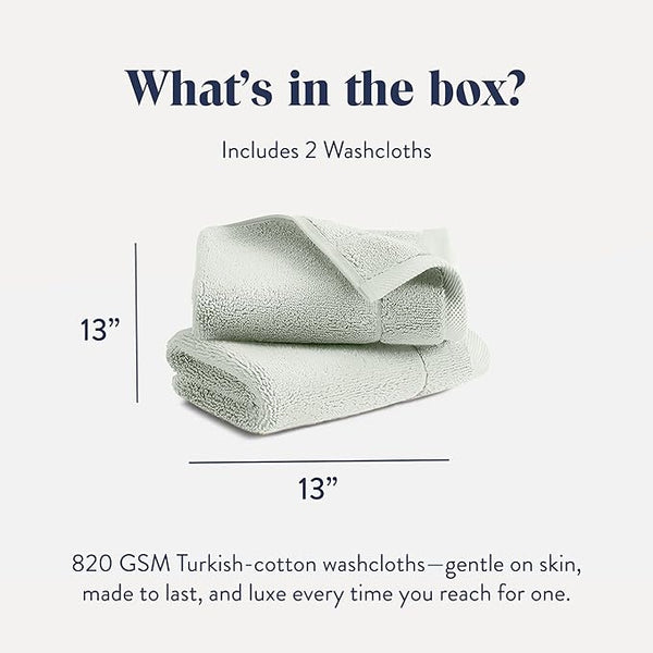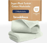 Brooklinen Super-Plush Turkish Cotton Washcloths - Set of 2 - Cotton, 820 GSM, Highly Absorbent, Machine Washable, Perfect for Home & Bathroom (13" x 13", Aloe Green)