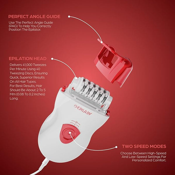 Epilady Speed Corded Epilator for Women ? Dual-Speed 40-Disc Root Hair Removal Device for Legs, Underarms and Bikini Area Compact Waterproof Anti-Pinch Design for Smooth Long-Lasting Results