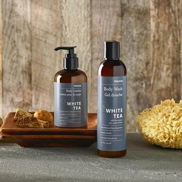 Bring the Westin Hotel bath and body experience into your home with the signature Westin White Tea Scent. Our exclusive formula cleanses and hydrates skin to truly transform your shower experience. Nourishing pea extract and wheat proteins work to renew skin while jojoba and shea butter tighten and improve elasticity. The result? Smoother, more supple skin and hair that glows.