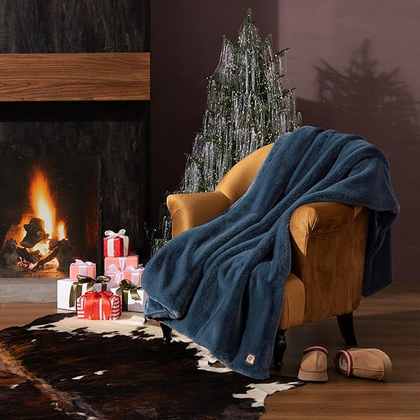The UGG Euphoria throw is medium weight. It feels warm and cozy without being too heavy or bulky. Perfect for snuggling or layering.