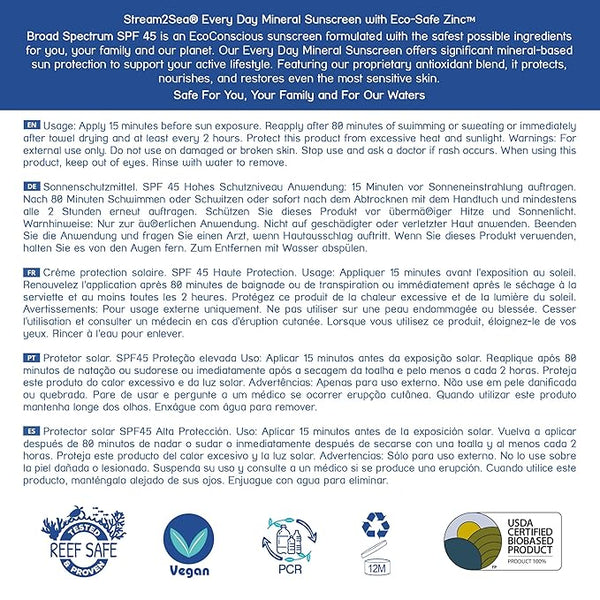 Product descriptionLeaders in Reef Safe Sunscreens & SkincareSafe for You and Safe for Our WatersWhat's YOUR sunscreen?Leaders in reef safe skincare, Stream2Sea is the FIRST and the ONLY mineral sunscreen...