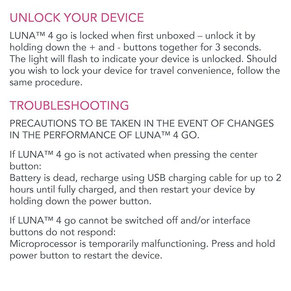 Upgraded to a whopping 300 uses per charge, so you don¡¯t have to worry about charging your device mid-trip, or running out of battery mid-cleanse. LUNA 4 go also features a new travel-lock option, to make skincare on-the-go as easy as possible - whether you¡¯re going to the gym or on vacation.