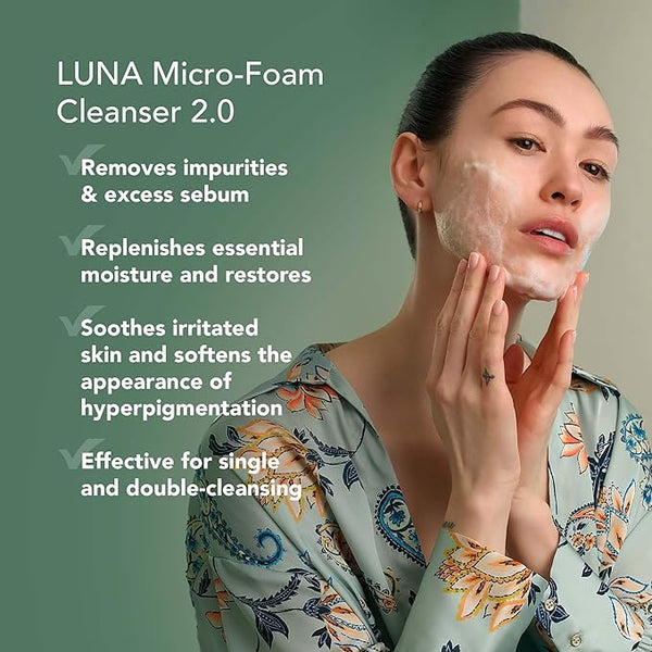 Lighter than air Micro-Foam Cleanser's creamy texture combines with water & transforms into rich, delicate micro-bubbles that work with your LUNA 4 go to perfectly expel the deep in-pore impurities.