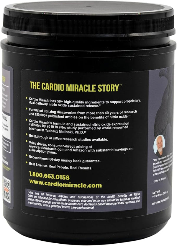 Formulated by nitric oxide advocate John Hewlett and scientifically validated by researchers like Dr. Tadeusz Malinski (University of Ohio), Cardio Miracle activates nitric oxide through both the oral and gut pathways?something no beet capsule or chew can match. The result? Up to 24 hours of sustained nitric oxide support.