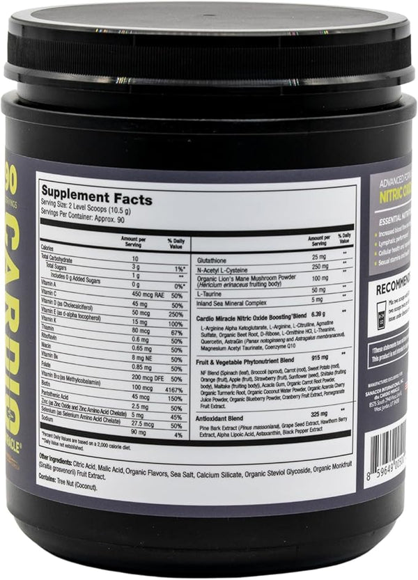 Made in the USA in a GMP-certified facility and third-party BSCG drug-free certified, Cardio Miracle is gluten-free, keto-friendly, and free from caffeine or artificial ingredients.
