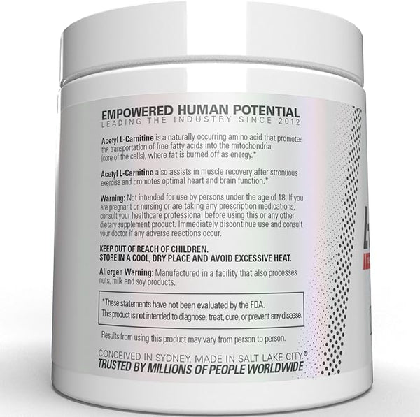 Perform to your best with 100% Pure Acetyl L-Carnitine, a naturally occurring amino acid needed in the body to support important functions. Supplementing with Acetyl L-Carnitine can ensure your stores are adequate and you can reap the benefits.