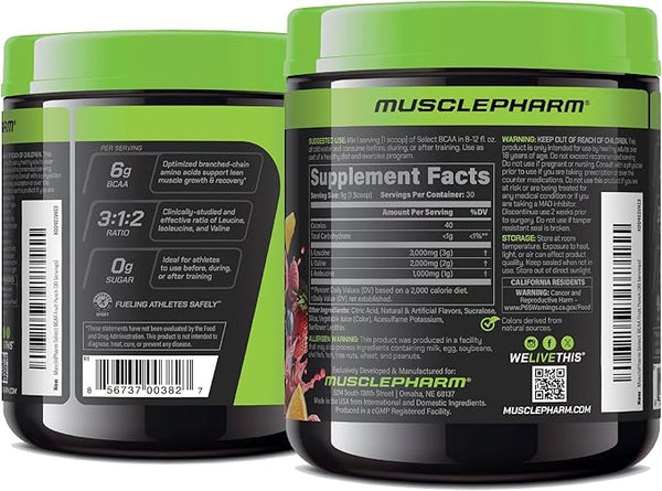 MusclePharm Essentials BCAA Powder is currently available in 2 refreshing flavors:Blue Raspberry & Fruit Punch.