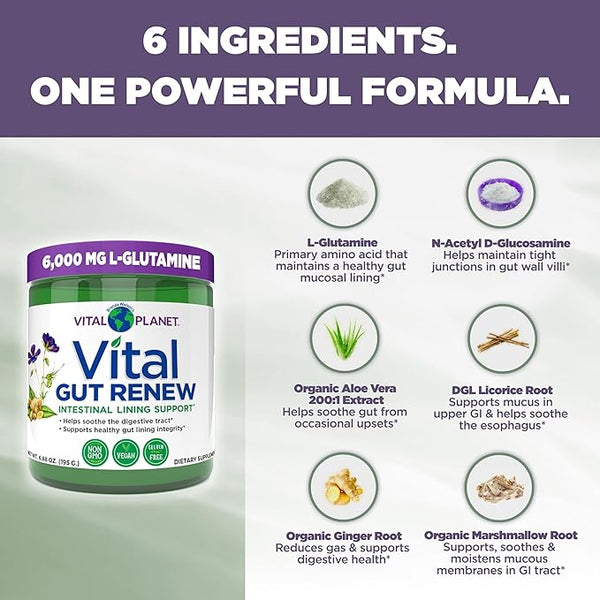 Product descriptionVital Gut Renew for Intestinal Lining Support and Leaky Gut -Vital Planet Family of Products -This is a modal window.Vital Gut Renew PowderVital Lax 60 CapsulesVital Fiber PowderVital Lax...