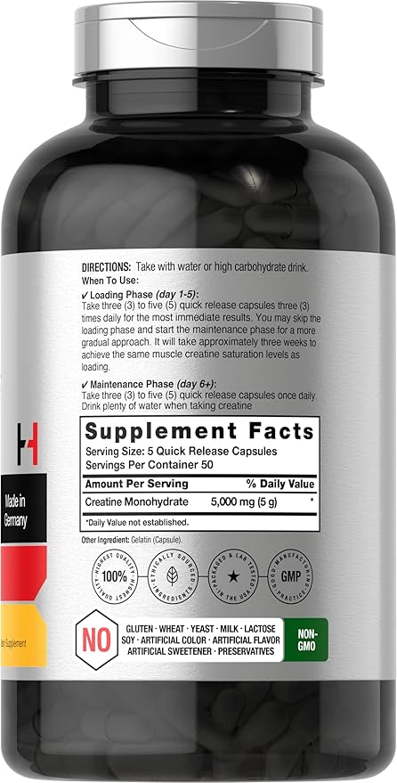 This special formula is made in Germany using the trademarked ingredient, Creapure. Creapure is produced under strict quality control standards and is HPLC tested to ensure purity & potency for both men & women. Creatine can be found in many forms, such as bulk powders, pills, capsules, tablets, pills, gummies and more. As a defined leader in sports nutrition, Horbaach now offers this innovative form of Creatine in convenient quick-release capsules!