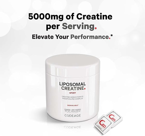 Codeage Liposomal Creatine Monohydrate supplement delivers 5000 mg per serving of creatine monohydrate in a powder form per serving. This micronized creatine dietary supplement also features a liposomal formula made with a phospholipid complex. Simply mix in your preferred beverage or protein shake. It can be used as a creatine pre-workout and as a creatine post-workout.