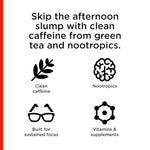 FOCUSAID Zero contains a non-jittery dose of 100mg of clean caffeine from green tea and yerba mate. Avoid the mid-afternoon slump and keep your mind on task to power through your day.