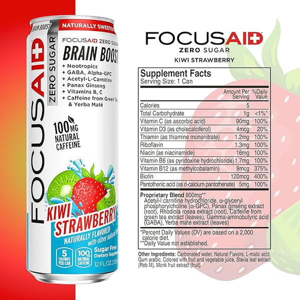 FOCUSAID Zero delivers a refreshing, Strawberry Kiwi flavor to sip and enjoy throughout the day.