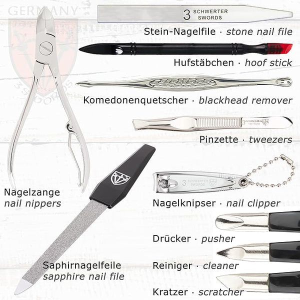 3 Swords Germany fingernail and toenail care instruments are of the finest quality. Our high-quality crafted sets include all the manicure instruments you and your family need for perfect nail care.