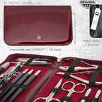 Each of our manicure sets comes in an attractive and sturdy gift box. In addition, our brochure "Fingernail and Toenail Care" is included with each set. You can find a lot of general information there, an overview of the most important manicure and pedicure instruments as well as some tips for caring of the case. A fine microfiber cloth for cleaning the contained steel instruments is also included in the case.