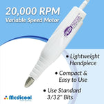 The PediNova Pro is a powerful high-performance combination Pedicure and Manicure Filing System. It has 20,000rpm, variable speed control and comes with 14 Professional Tools for both Pedicure and Manicures.