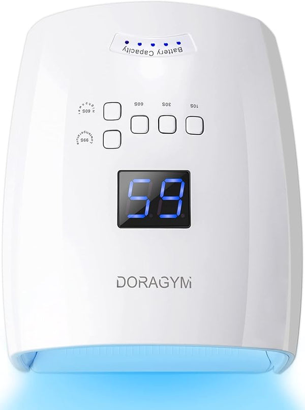 Product descriptionDORAGYM 66W LED/UV LampMain FeaturesAuto Sensor for Easy Use10, 30, 60, 99 Second TimersDual Light TechnologyDetachable BaseCures All Gel PolishEasy to use & Salon-qualityThe Professional LED/UV Nail Lamps for...