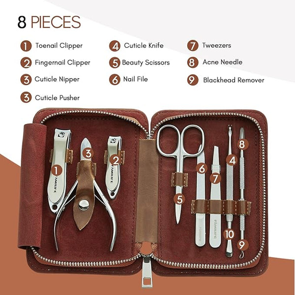 FAMILIFE 8 IN 1 MANICURE SET BROWN COLLECTION MENS GROOMING KIT & MENS NAIL KIT